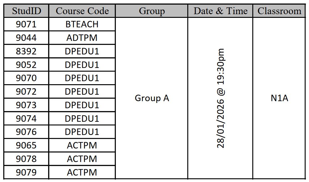 Exam Training by Fathimath Zayyana - Monday, 26 January 2026, 4:41 PM Number of replies: 0 Student Group Permalink
