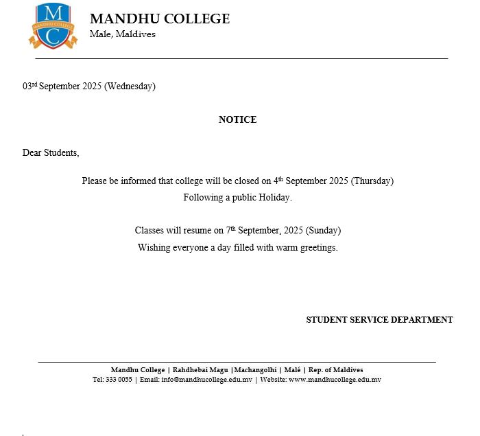 To all the students by Shifana Ibrahim - Wednesday, 3 September 2025, 3:42 PM Number of replies: 0 Permalink