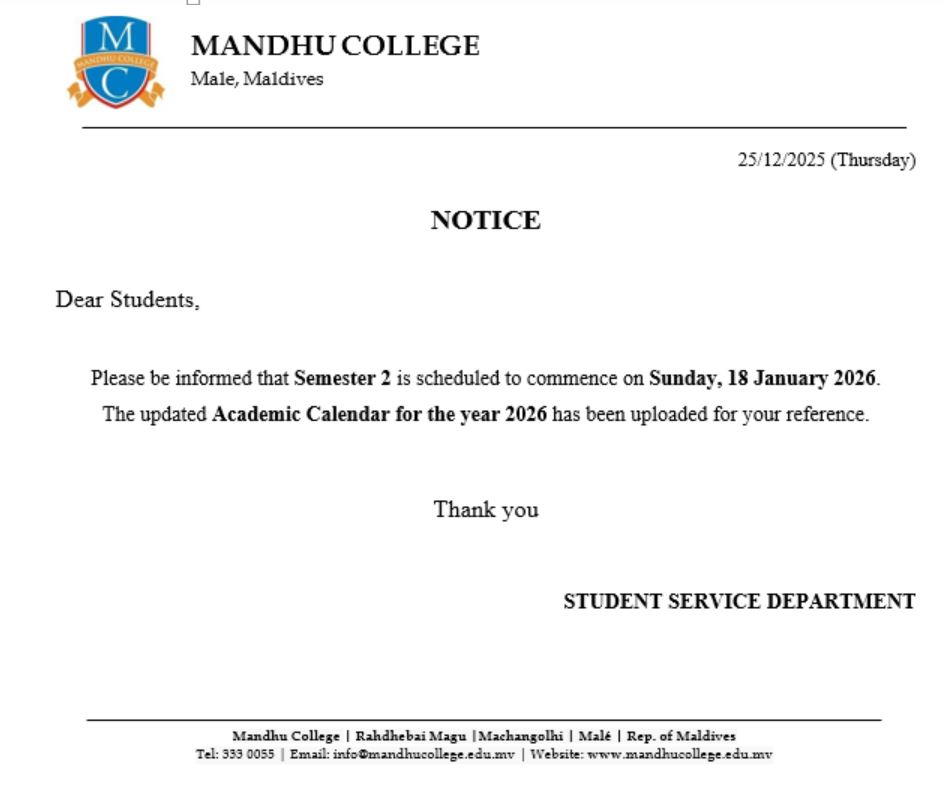 To All The Students by Fathimath Zayyana - Thursday, 25 December 2025, 3:58 PM Number of replies: 0 Permalink
