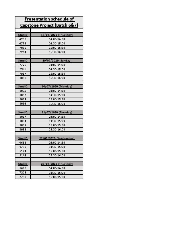 Capstone Project Schedule