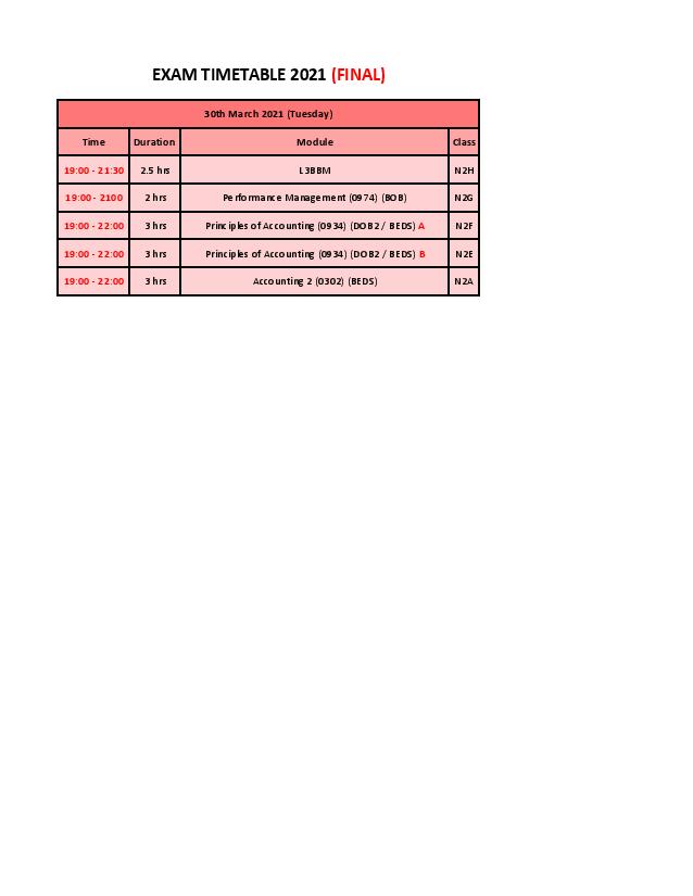 EXAM TIMETABLE by Aishath Vileena - Tuesday, 16 March 2021, 5:09 PM Number of replies: 0 Download Exam TimetableDownload Group (0934 Principles of Accounting)Download NOTICE TO CANDIDATES Permalink