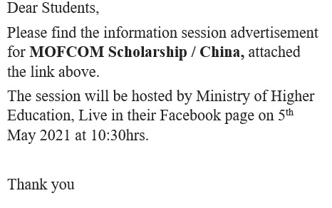 To All Students by Saleema Hassan - Wednesday, 5 May 2021, 2:58 PM Number of replies: 0 Download Notice Permalink