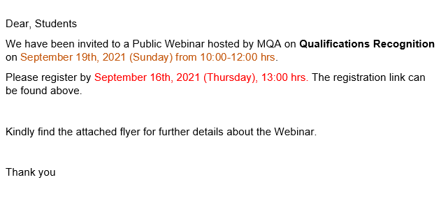 To All Students by Saleema Hassan - Wednesday, 15 September 2021, 3:10 PM Number of replies: 0 Registration Link : https://form.jotform.com/212471282189054 Permalink