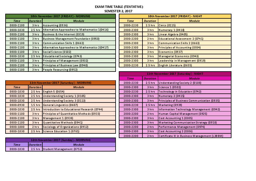 Download Exam Timetable Sem2/2017 (TENTATIVE)