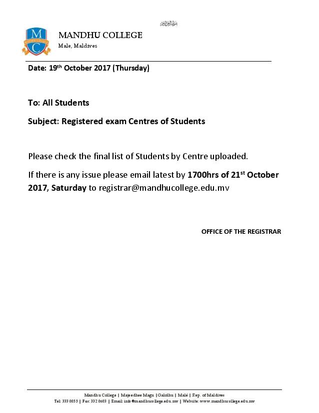 Final List of Student by Centres by Ashiyath Zumra - Thursday, 19 October 2017, 11:48 AM Number of replies: 0 Download Final List of Student by Centres Permalink